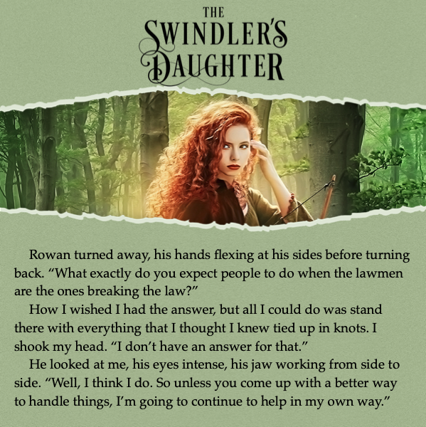 Happy Release Day to The Swindler’s Daughter! I’m so excited for you all to have a chance to get to know Miriam and Rowan. This is very much an homage to Robin Hood and the wonderful complexity inherent in the idea of stealing from the rich to give to the poor.