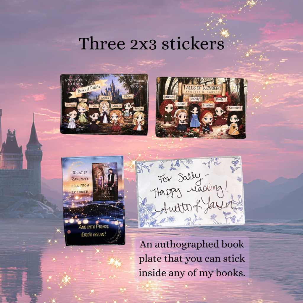 I am now offering Swag Packs in my Book Shop! That means if you like collecting stickers and bookmarks, I’ve got a bundle for you! It also includes a signed book plate (that’s a sticker that I’ve autographed that you can then put inside the paperback or hardback of one of my books that you’ve already purchased). It’s pretty much like having me sign the book. I’ll even sign it to you specifically!